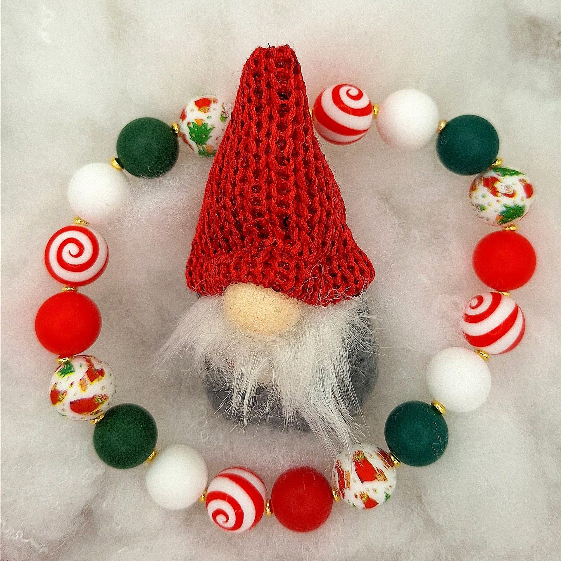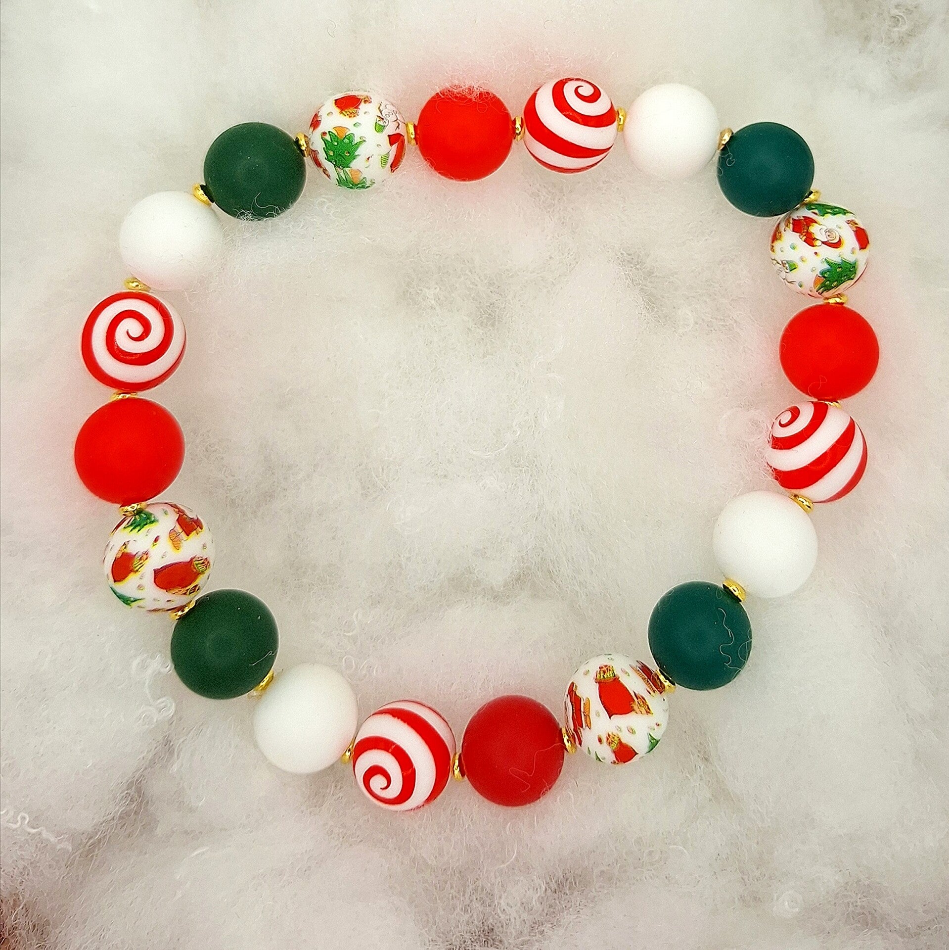 Hübsche Hundekette im Weihnachtsdesign mit Perlen 15 mm und goldenen Zwischenelementen